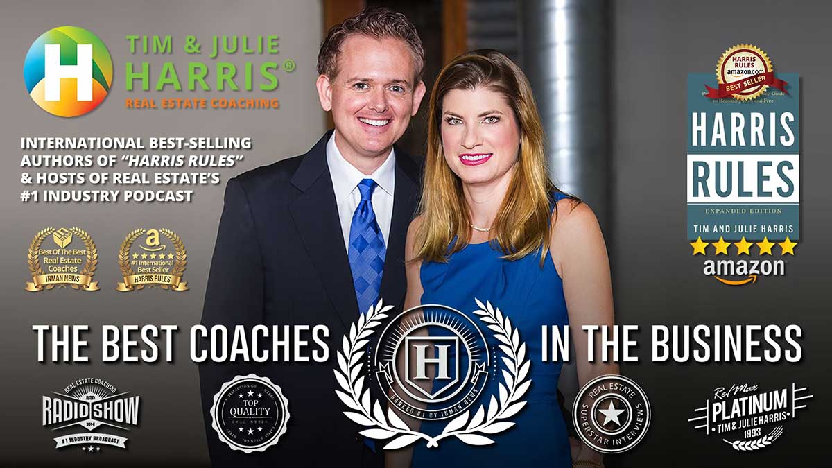 From 2007 to the present Tim & Julie have become two of the industry’s leading coaches. Inman News named Tim and Julie Harris as the “Best Coaches in the industry.” They have written several books including, Think and Grow Rich for Real Estate, The Real Estate Treasure Map, and Part Time Agent to Full-Time Superstar. Their newest book, HARRIS RULES, Your No-BS Practical Step by Step Guide to Finally Becoming Free became a #1 Best Seller on Amazon.com within 48 hours of release.
